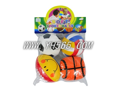 4″黑白足球、排球、篮球、笑脸橄榄球套四